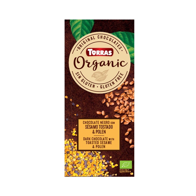 BIO TEMNA ČOKOLADA S SEZAMOM IN CVETNIM PRAHOM, 100gr